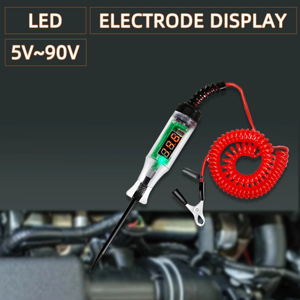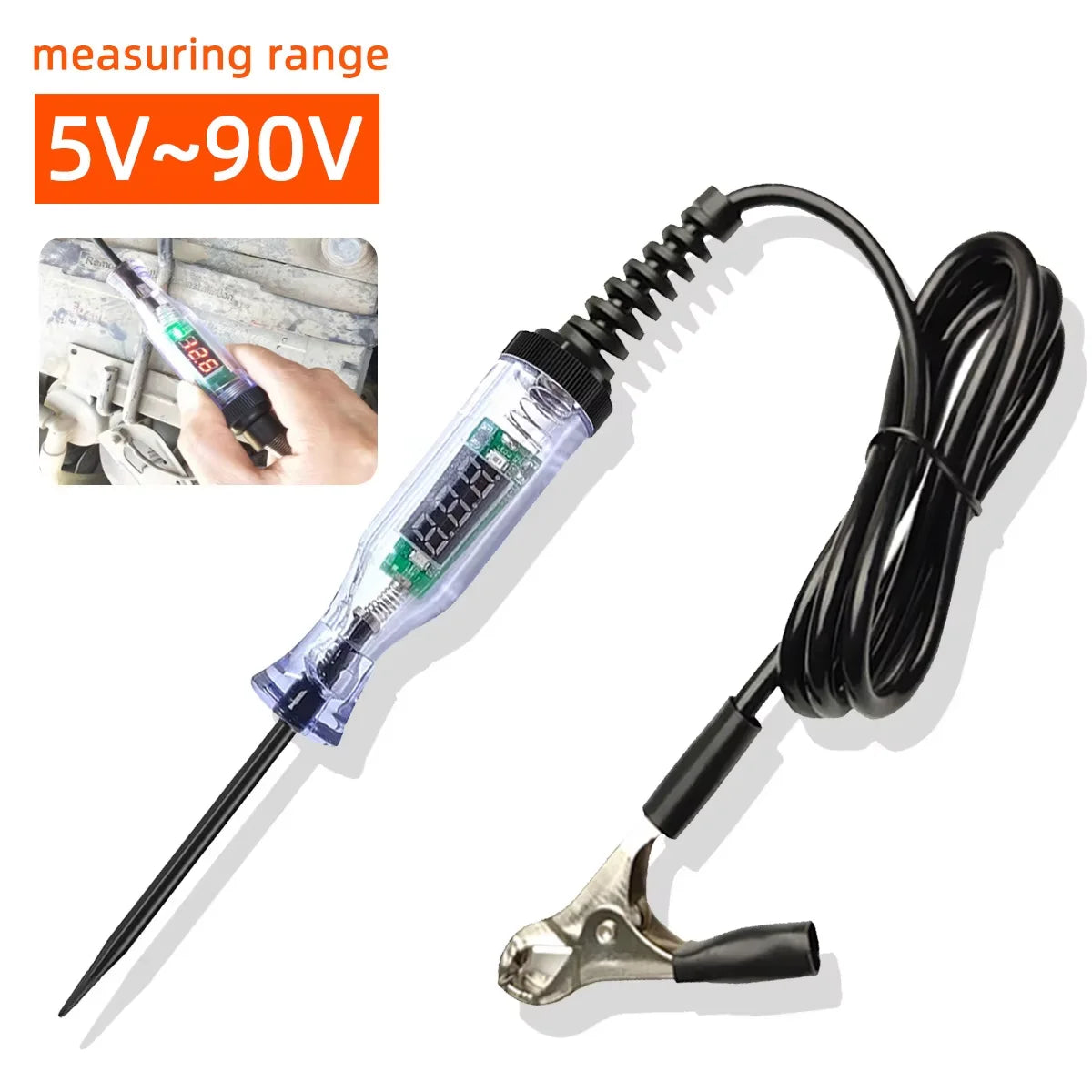 5V-90V Automotive Digital Voltage Circuit Tester Voltage Test Long Probe Pen Circuit Detection Diagnosis and Maintenance Tool